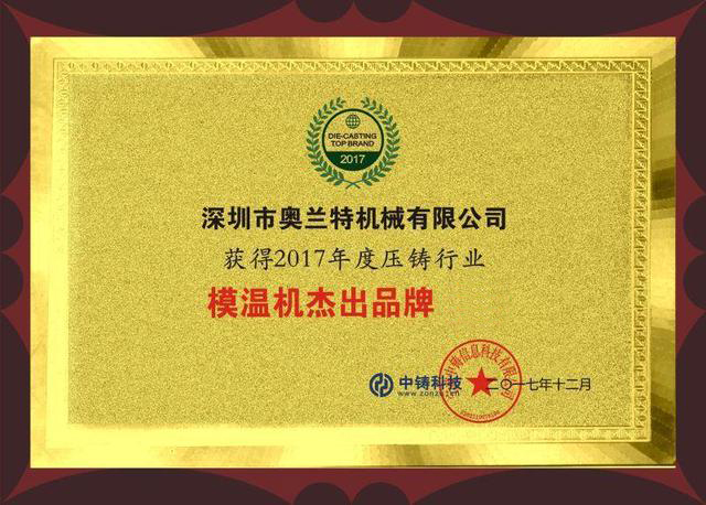 一年一度的壓鑄行業(yè)模溫機(jī)模溫機(jī)杰出品牌評(píng)選經(jīng)過兩個(gè)多月結(jié)束啦,深圳奧蘭特機(jī)械壓鑄模溫機(jī)獲得壓鑄模溫機(jī)杰出品牌之一。奧蘭特模溫機(jī)在2016年也曾獲得品牌。